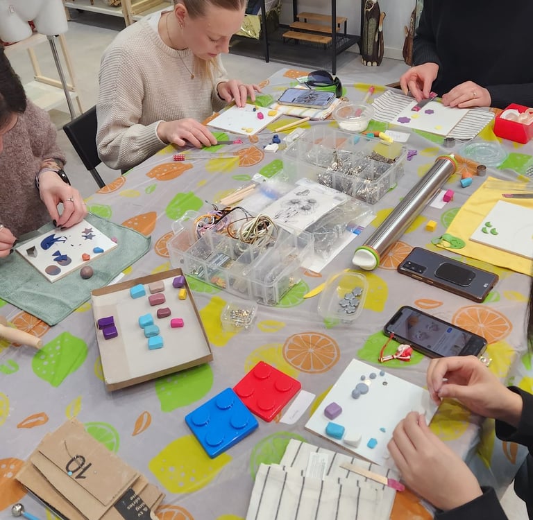 We frequently held a basic polymer clay workshop, great for people who are curious about polymer clay but don't know where to start, or are just looking for a fun creative activity. The workshop is 4 hours long and we cover the essentials, from conditioning & shaping to baking & finishing.
